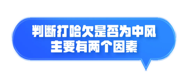 连续打哈欠,虽然存在睡眠时间不足、作息不规律等诱因,但排除以上因素仍有频繁打哈欠的现象,就要提高警惕,及时到医院做相关检查,排除脑中风。主要关注以下两个因素: